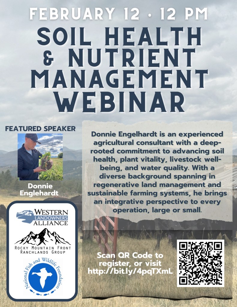 Soil Health and Nutrient Management is the first of several webinars in 2026 that will be hosted by Rocky Mountain Front Ranchlands Group and Western Landowners Alliance (WLA).