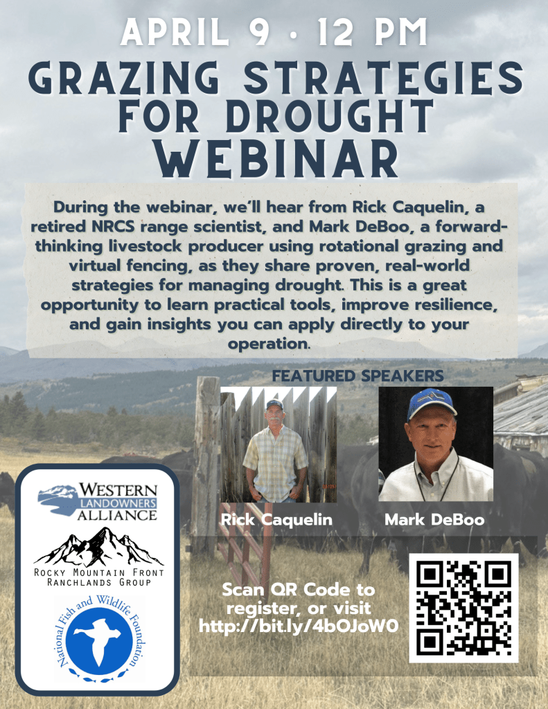 Grazing Strategies for Drought is the next in a series of webinars in 2026 that will be hosted by Rocky Mountain Front Ranchlands Group and Western Landowners Alliance (WLA).